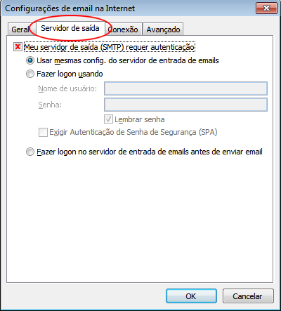 Marque a caixa Meu Servidor de Saída (SMTP) requer autenticação