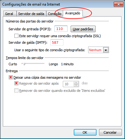 Marque a opção Deixar uma cópia das mensagens no servidor e selecione a caixa abaixando deixando por um prazo de sua escolha.